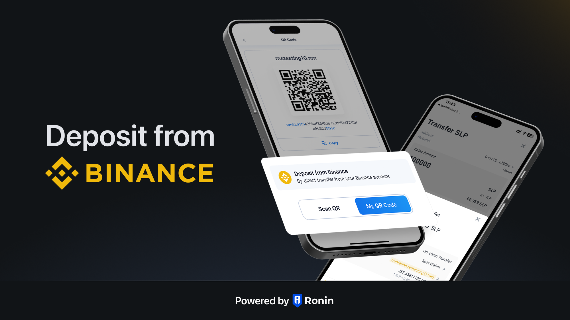 Binance Pay is a payment technology built by Binance. Binance Pay allows you to access the funds you have on Binance and use them outside of Binance. For example, use the Ronin wallet to deposit SLP from your Binance account! Starting today, you can deposit AXS, SLP, and USDC in a single click on Ronin through Binance Pay.