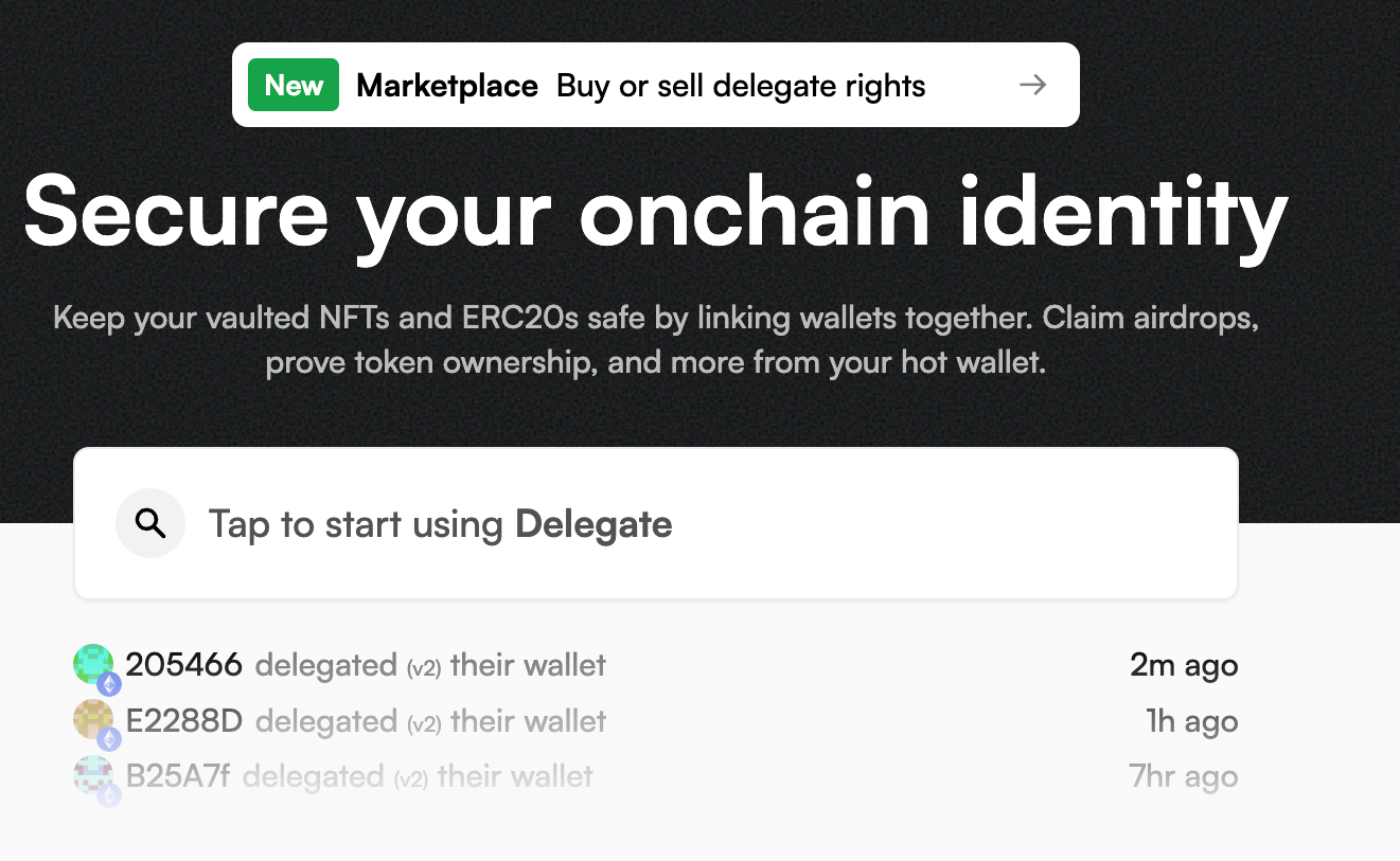 Looking to token-gate access to a webpage? Use the JavaScript SDK or HTTP REST API to fetch the delegation status of connected addresses. The Delegate API can also check a wallet’s delegation status when users sign messages.
