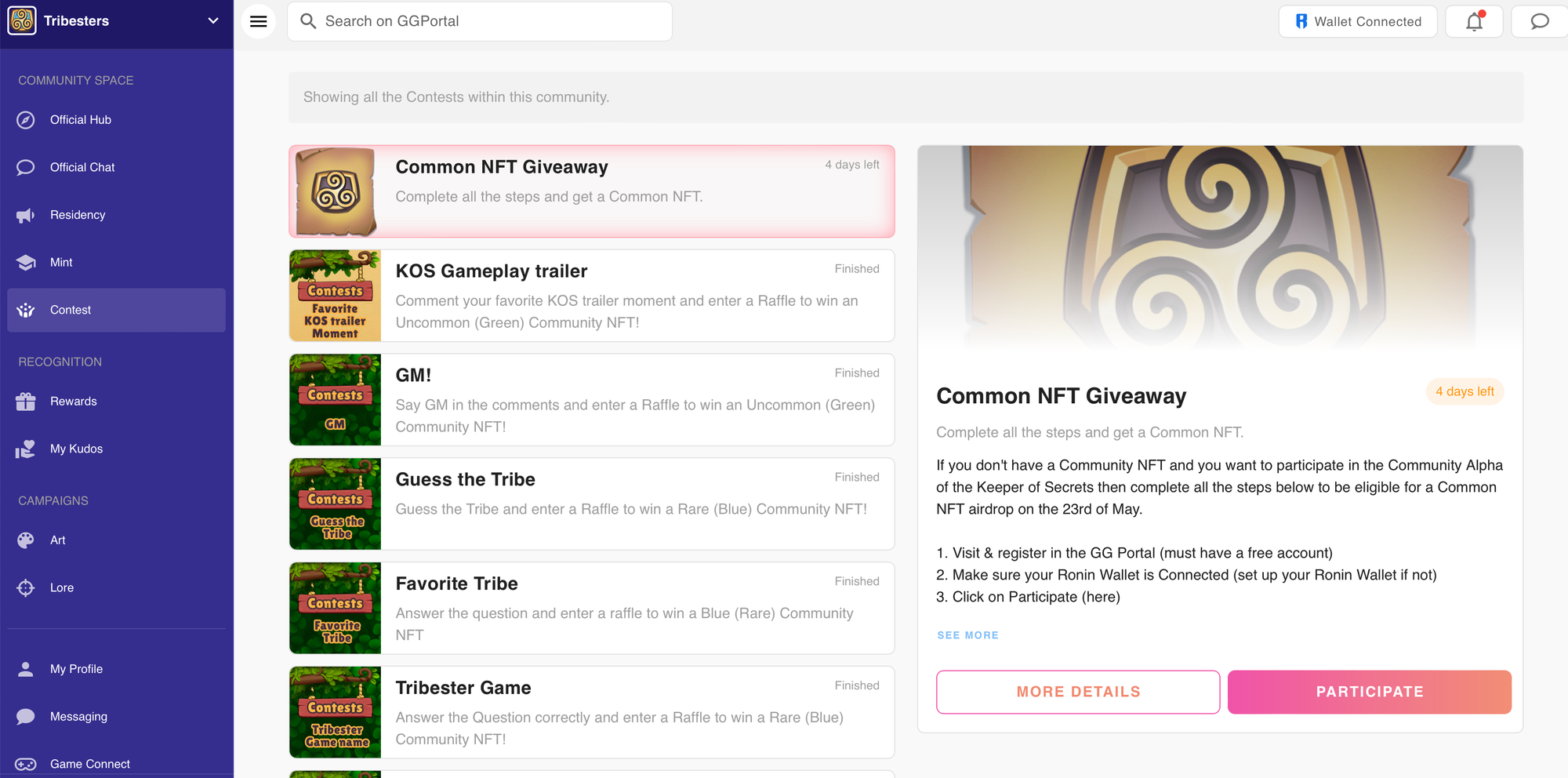 There are two ways to get access to the KOS Alpha. Own a Tribesters Community NFT or own a Tribesters Common NFT. You can buy a Community NFT on Mavis Market, or complete the steps below between now and May 23rd to get a Common NFT for FREE!