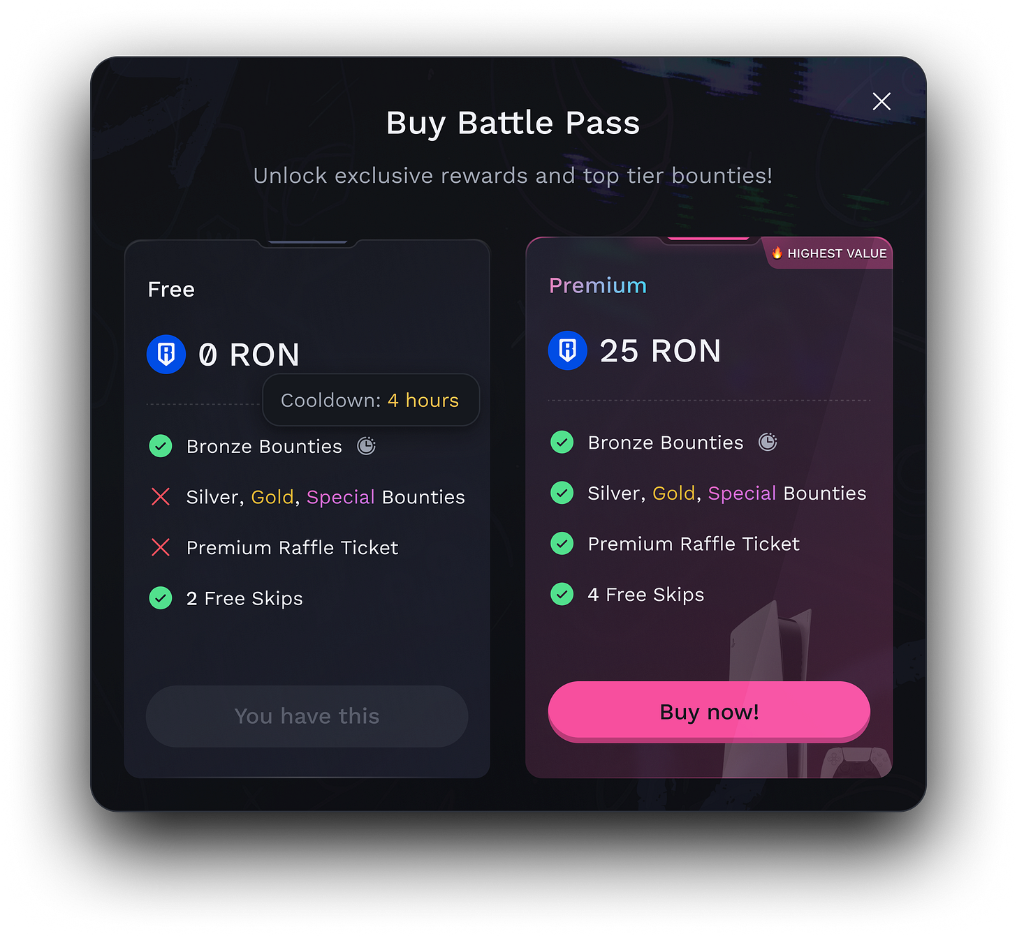 Battle Pass holders unlock Silver, Gold, and Special quests and higher weekly earning caps. These hidden caps help prevent botting and other kinds of extractive strategies. Premium means more points, which means more prizes.