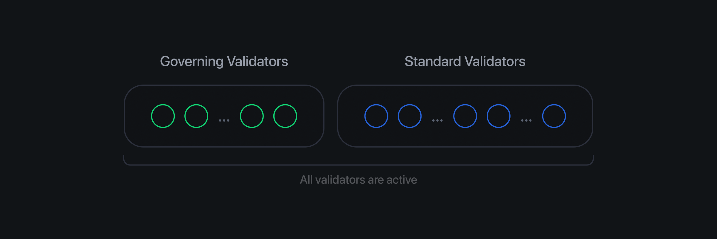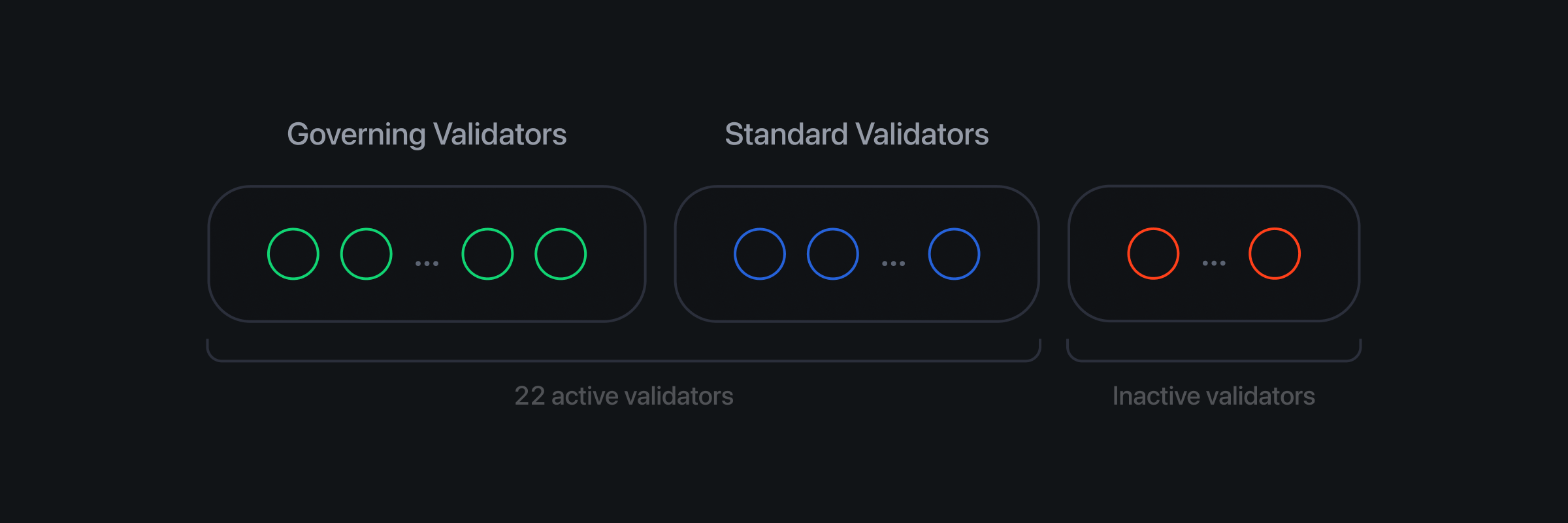 DPoS brought greater decentralization among validators. Today, there are 12 Governing Validators on Ronin who were selected through a PoA style. In addition, there are also 10 available Standard Validator slots for anyone, anywhere to become a Ronin validator.